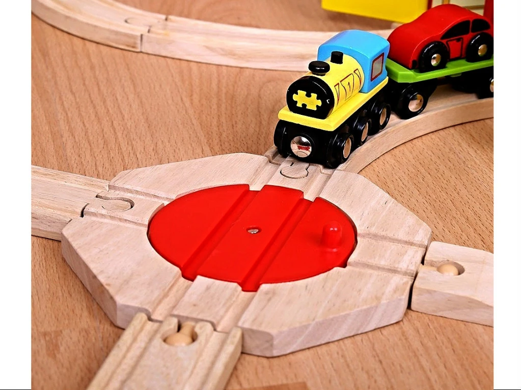 Een geweldige manier om een steeds groter wordend houten spoorwegnetwerk te beheren, deze 4-weg draaitafel houdt alle motoren in de goede richting! De meeste andere grote merken houten spoorwegen zijn compatibel met Bigjigs Rail. Gemaakt van hoogwaardige, verantwoorde materialen. Voldoet aan de huidige Europese veiligheidsnormen.