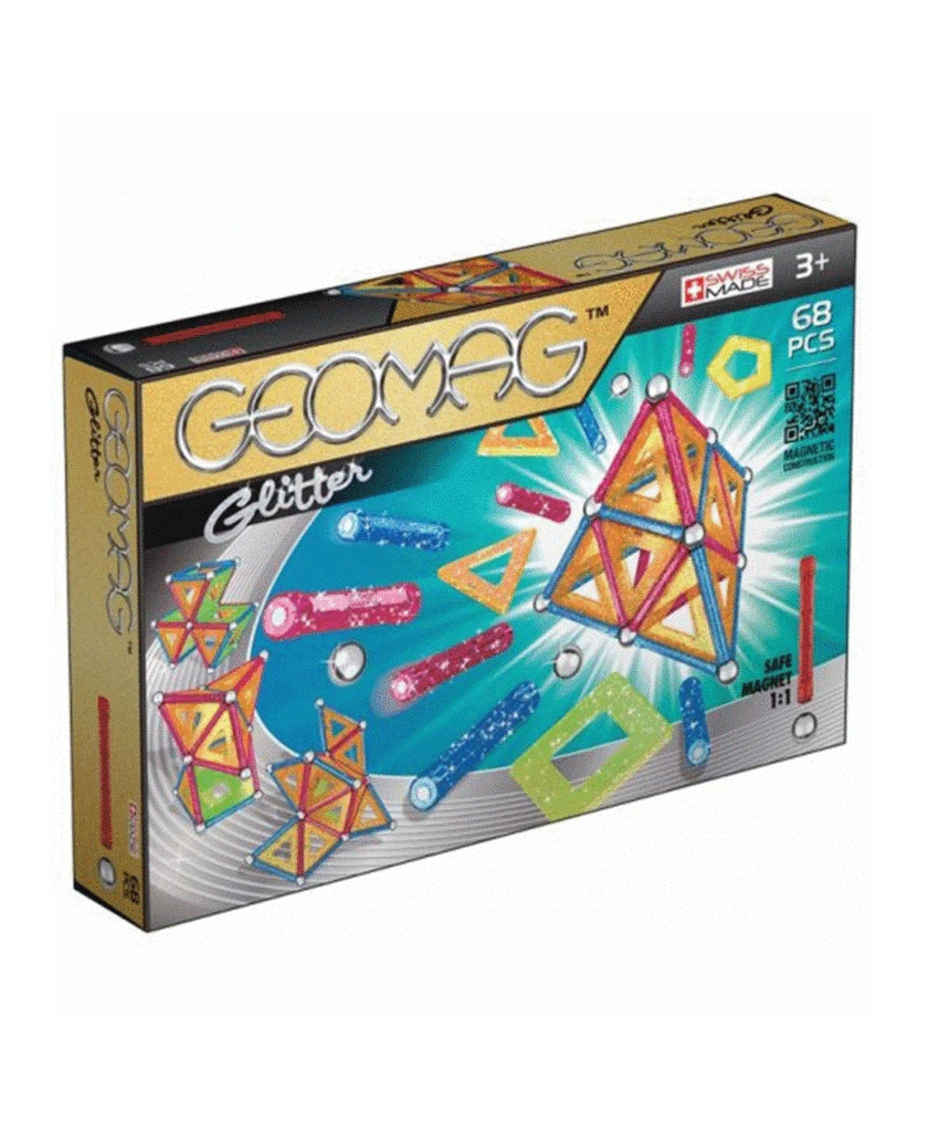 Glitterende en sprankelende staven en panelen in de nieuwe glamour kleuren met glittereffecten. De set bestaat uit 68 delen. Maak de mooiste bouwwerken. Desgewenst te combinerenmet andere Geomag bouwsets.
