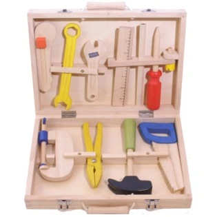 Uitgebreide houten gereedschapsset in koffer.