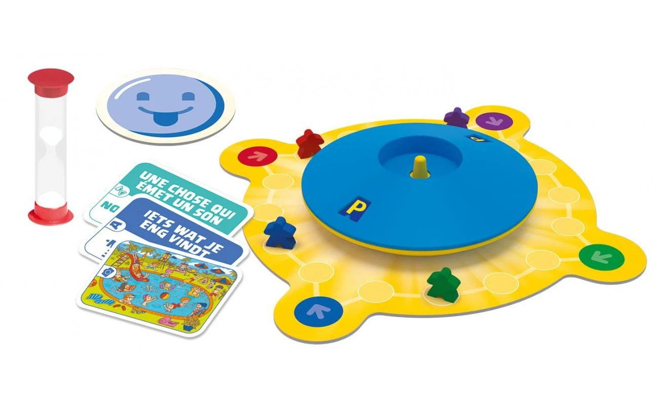 Iets wat je in de dierentuin ziet met de letter P? Maar voordat jij als volwassene antwoord mag geven moet je eerst nog 5 seconden wachten. Dan roept een kind “papegaai” en kaapt net binnen de tijd de vraag voor jouw neus weg! In deze familievariant van het bekende vraag- en antwoordspel hebben jong en oud evenveel kans om te winnen. Dankzij drie soorten vragenkaarten (letterkaart, zandloperkaart en fotokaart) krijgen de kinderen meer tijd of mogelijkheden om als eerste het juiste antwoord te geven. Wie geeft de meeste goede antwoorden en loopt met zijn pion als eerste een rondje om de spinner? Pim Pam Pet Family kan zowel individueel als in teams worden gespeeld en is geschikt voor spelers vanaf 6 jaar.