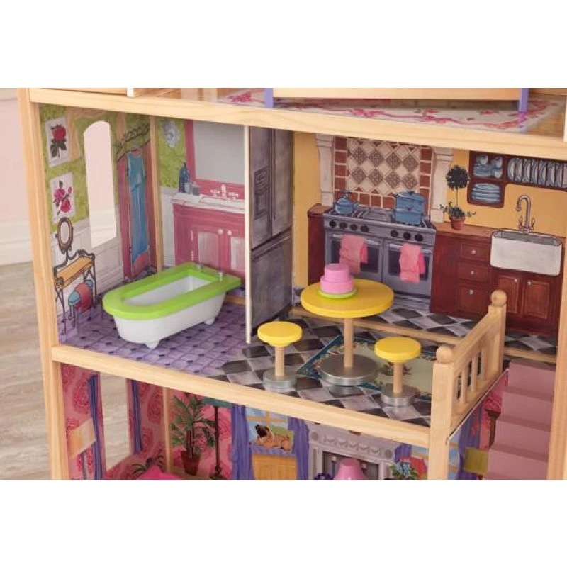 Houten poppenhuis van Kidkraft met 3 verdiepingen met een kleurrijk design. Geschikt voor (barbie)poppen tot 30 cm. Compleet met 11 meubelstukken. Zorgt voor uren speelplezier.