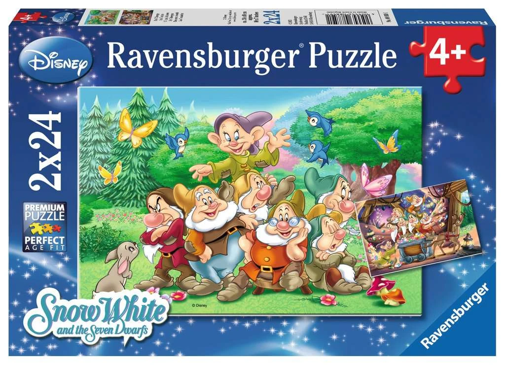 Sneeuwwitje en de 7 dwergen – Puzzelbox Ravensburger 2 x 24 stukjes.